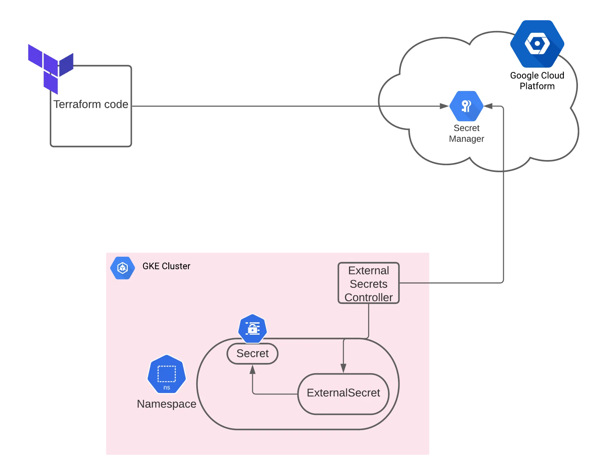 At PlaxidityX (formerly Argus Cyber Security) we use Google Kubernetes Engine as our Kubernetes cluster and Terraform as our Infrastructure as Code tool. Using ExternalSecrets Custom Resource Definition (CRD), we found a way to automate secret creation in a secure manner.